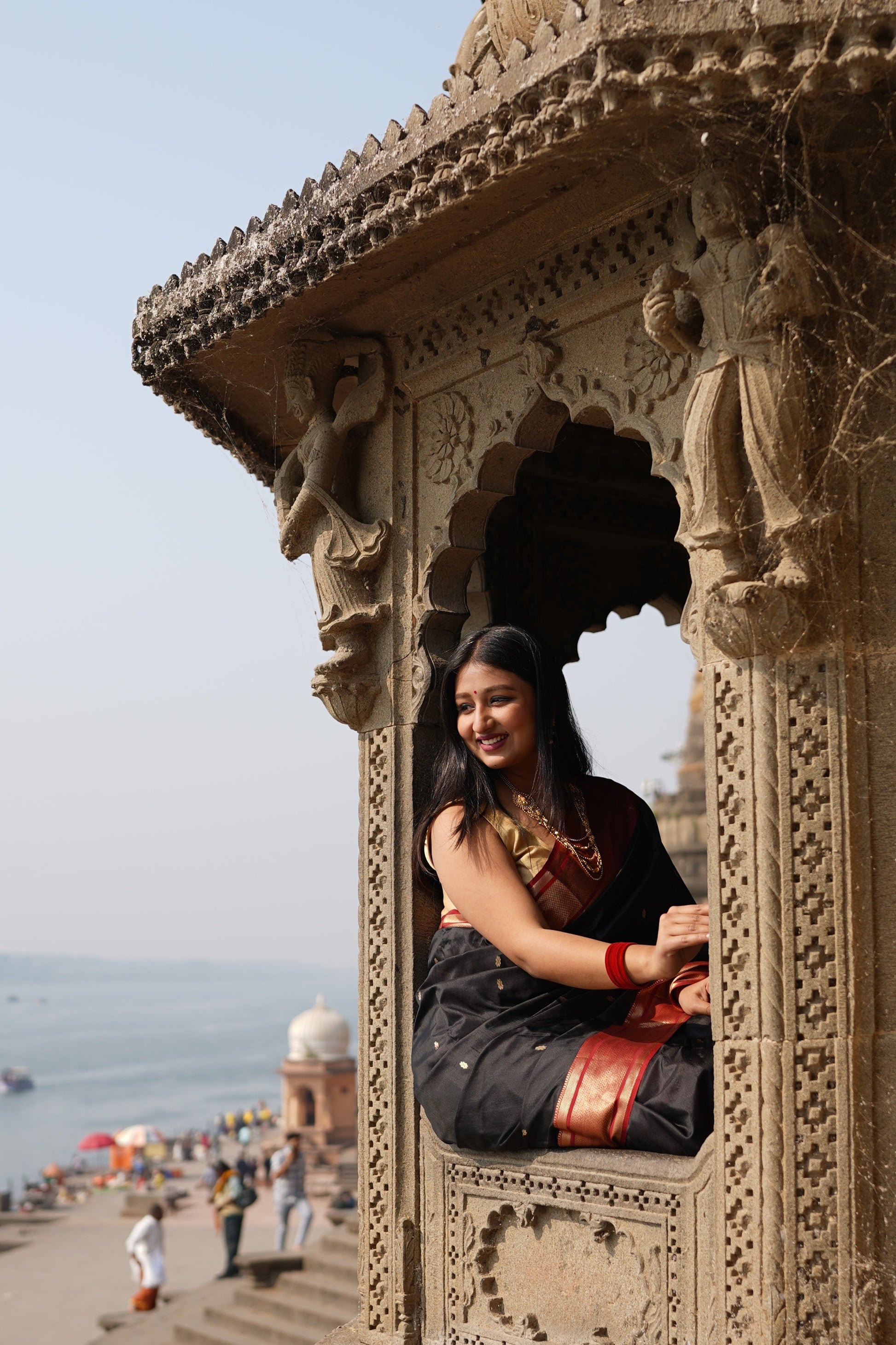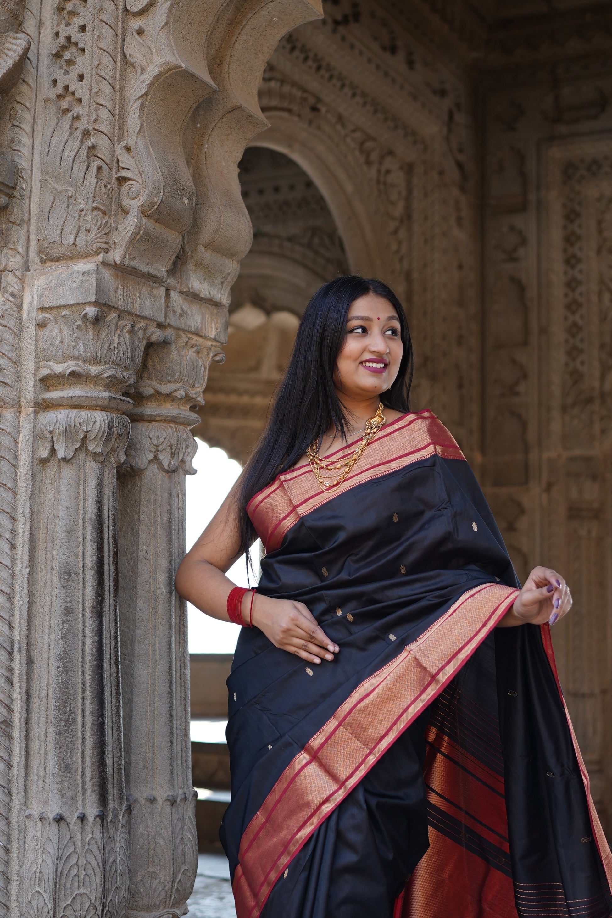 Black Maheshwari Silk Cotton Handloom Saree