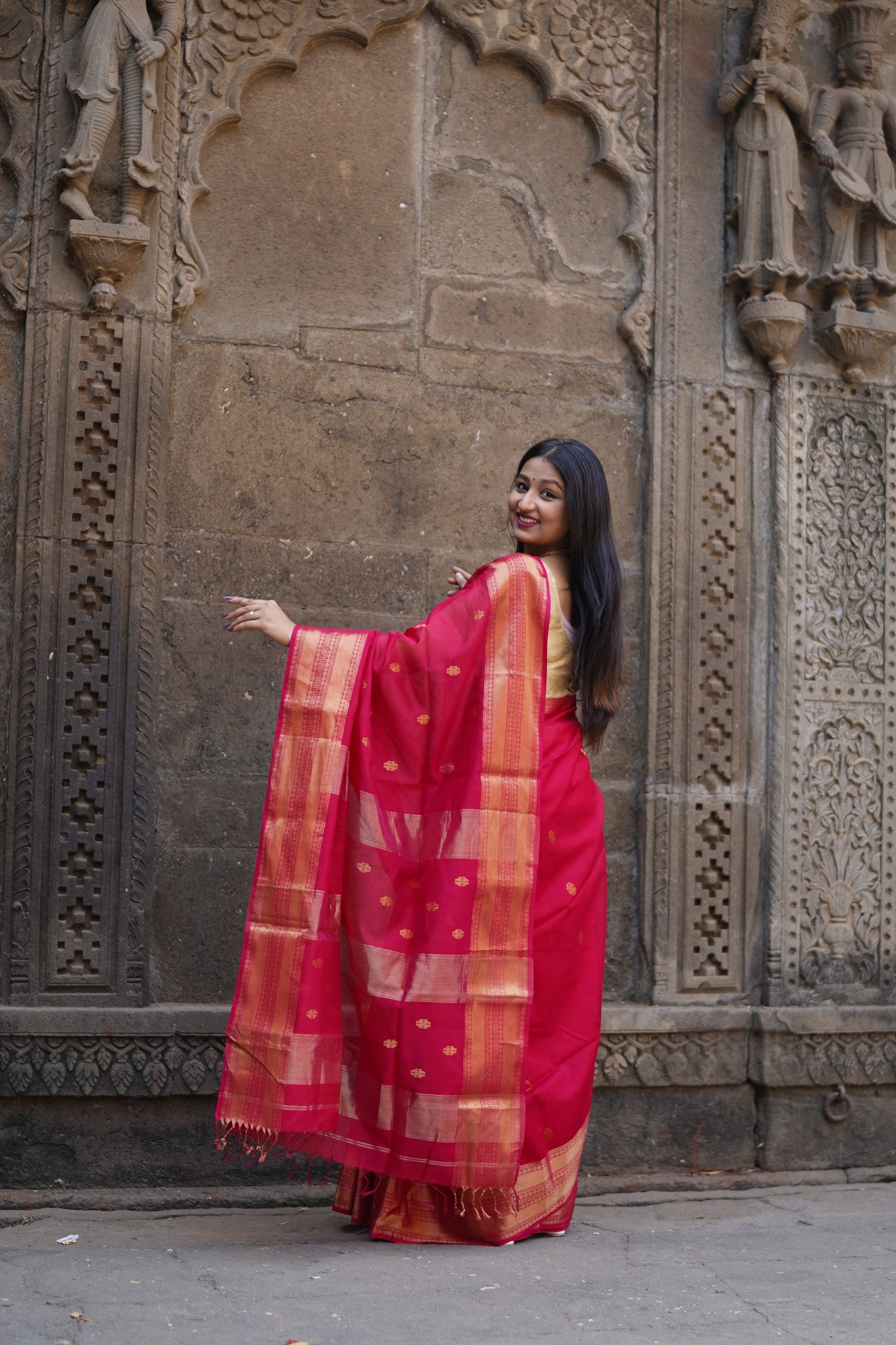 Red and Pink Maheshwari Silk Cotton Handloom Saree